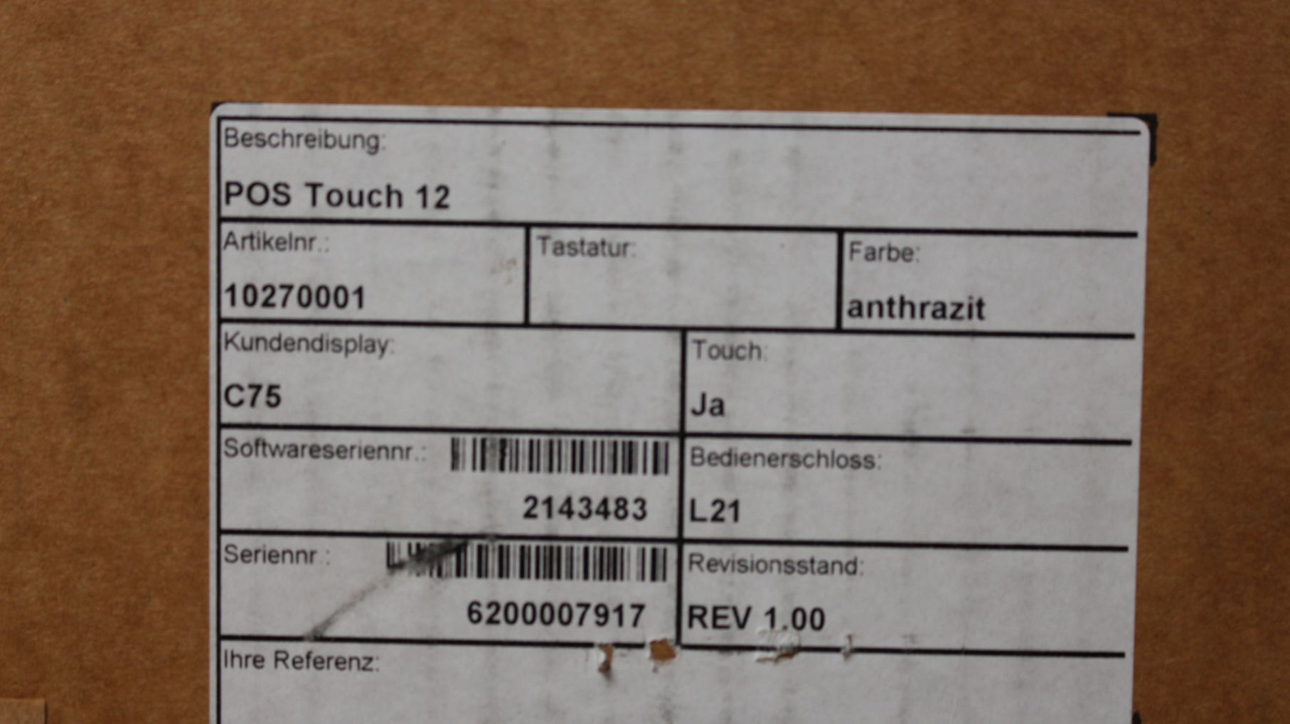 Ausstattung: | inkl. Bon Drucker META PEACE, und HONEYWELL Scanner YJ HF 600 , Schloss, diverse Schlüssel |